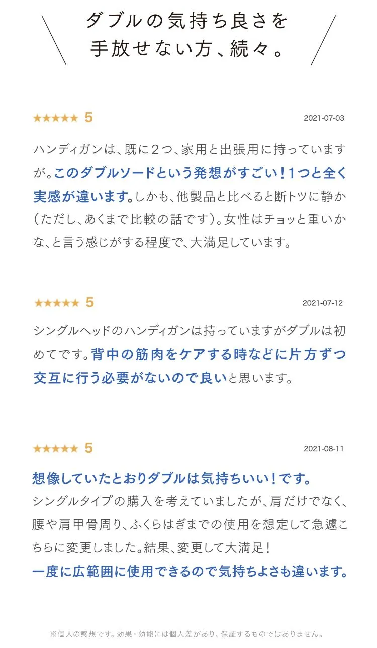 ※ 本製品は、ボディケア 雑貨です。 肩 や 腰 などの治療は行えません。恐れ入りますが、医療機器である専用の マッサージ機 / マッサージ器 ハンディ タイプ 等 ( マッサージガン , フットマッサージャー , フットマッサージ , ハンディマッサージャー , ハンドマッサージャー )を別途お買い求めください。
