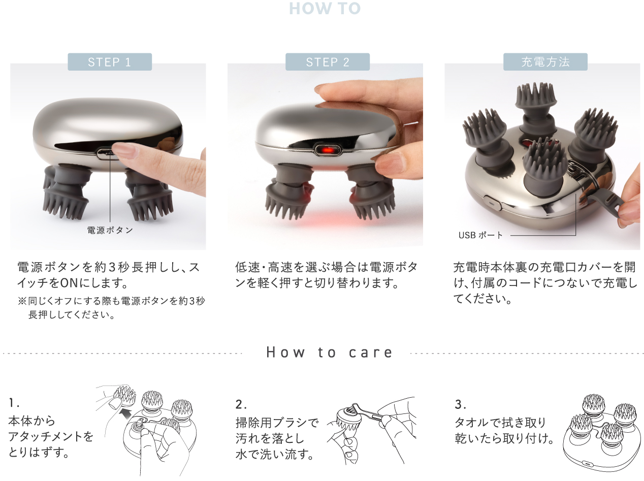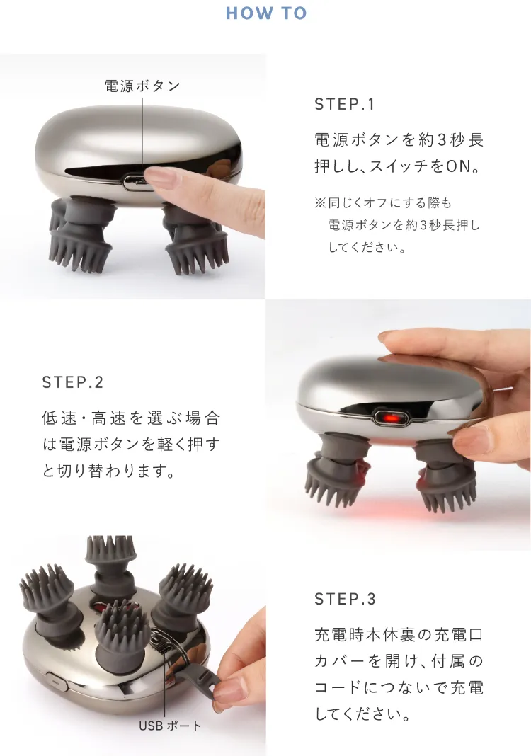※ 本製品は、治療を目的とした頭皮マッサージ器・マッサージ器・ヘッドマッサージャー等ではありません。
