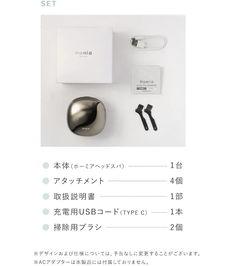 ・Homiaヘッドスパの本体差込口はUSBタイプCになります。