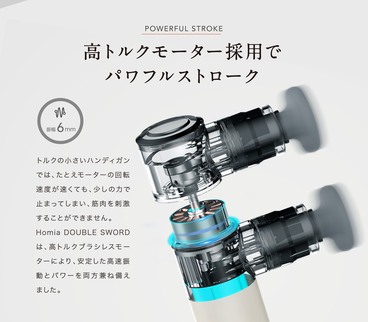 Homia DOUBLE SWORDは、高トルクブラシレスモーターにより、