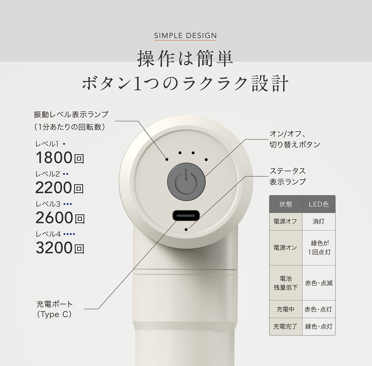 ボタン一つでオンオフの切り替えができる、ラクラク設計となっています。
